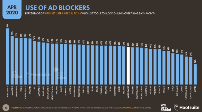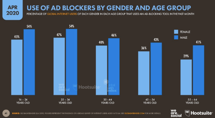Примерно половина пользователей использует блокировщики рекламы. В России доля таких респондентов достигает 41%. Интересно, что во всех возрастных группах блокирующие программы чаще устанавливают мужчины.