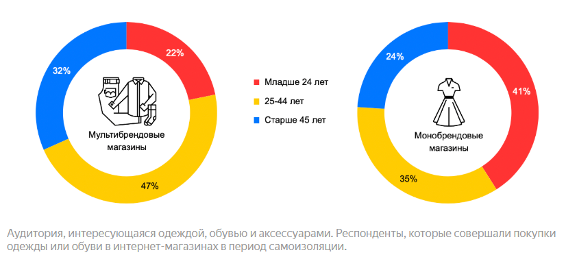 При этом молодые пользователи предпочитают покупать одежду в монобрендовых магазинах. Всего на собственных площадках брендов делали заказ около трети потребителей, среди которых 41% — младше 24 лет.