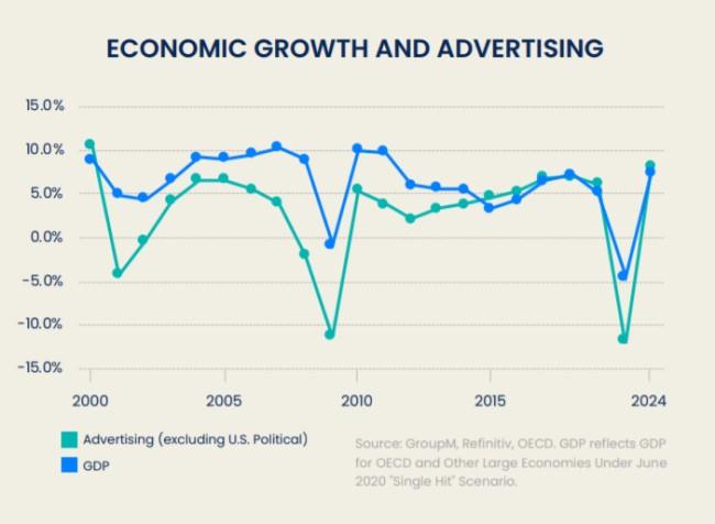 Учитывая влияние COVID-19 на ВВП, сценарий с падением на 11,9% еще можно назвать «умеренным». GroupM напоминает, что в 2009 г., на фоне мирового финансового кризиса, ВВП снизился на 1%, а рекламный рынок сократился на 11,2%.
