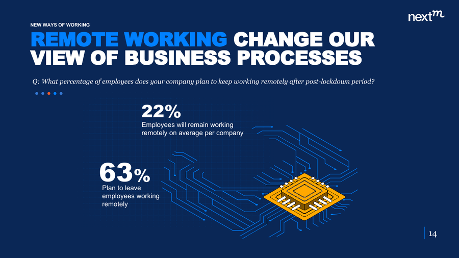 - За последние три месяца новым трендом стало онлайн-обучение персонала, клиентов и партнеров — многие собираются поддерживать эту тенденцию в будущем. Также прижилась «удаленка»: 63% респондентов сказали о готовности оставить часть штата работать из дома. В среднем работодатели планируют перевести на такой формат 20% сотрудников.