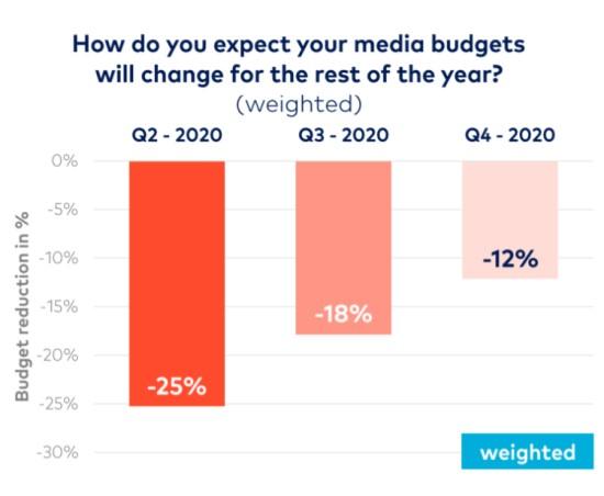 Четыре из пяти (84%) брендов планируют сократить свои медиабюджеты до конца 2020 г., свидетельствует вторая волна исследования Ebiquity. В конце марта этот показатель был ниже — 80%. Ухудшился и прогноз: в прошлый раз участники рынка ожидали, что снижение составит в среднем 18%, теперь они говорят о 26%. При этом на 8 п. п. увеличилась доля тех, кто «урежет косты» более чем на 50%.