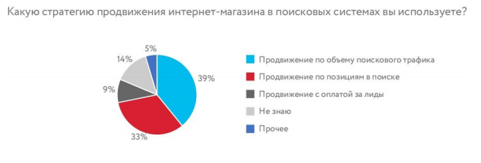 Самая популярная (39%) SEO-стратегия в отрасли — продвижение по объему поискового трафика. На втором месте — продвижение по позициям (33%), на третьем — продвижение с оплатой за лиды (9%). Доли участников, которые отметили рост посещаемости и продаж: 52% — по объему трафика, 50% — с оплатой за лиды, 30% — по позициям.
