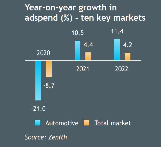 Однако уже в следующем году автоконцерны наверстают упущенное: Zenith прогнозирует рост рекламных расходов на 10,5% в 2021 г. и увеличение на 11,4% в 2022 г. Эксперты также ожидают, что впервые с 2017 г. продажи легковых автомобилей пойдут вверх — благодаря реализации отложенного спроса и страхам, связанным с использованием общественного и арендуемого транспорта.