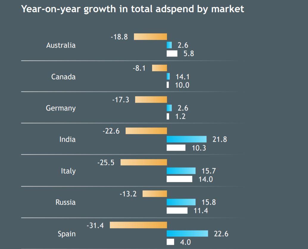 Авторы Automotive Advertising Expenditure Forecasts отмечают, что пандемия оставила потребителей в растерянности и заставила многих людей отказаться от крупных покупок. В свою очередь, автопроизводители испытывали трудности с поставками — во многих странах ограничения привели к приостановке заводов. Как только компании осознали глубину кризиса, они резко сократили маркетинговые бюджеты. Наибольшее падение, как и следовало ожидать, наблюдалось в апреле и мае, после чего началось медленное восстановление.