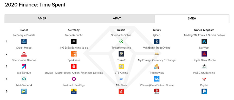Присутствие россиян в финансовых приложениях выросло на 85% — до 629 млнчасов. Эта динамика выше общемирового показателя, составившего 45%. Большевсего времени пользователи проводили в «Сбербанк Онлайн», «Тинькофф Инвестиции»и «Тинькофф».