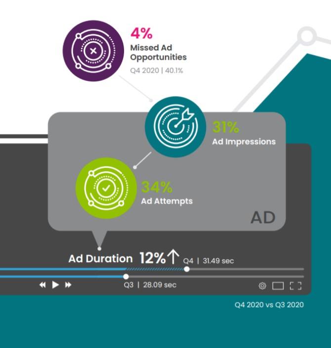 В четвертом квартале, по оценкам Conviva, объем размещенной видеорекламыувеличился на 34%, а количество показов выросло на 31%. Согласно исследованию,размещение 40% рекламы не соответствовало ожиданиям заказчиков, зато качествоостальной рекламы улучшилось. Буферизация видео сократилась на 14%, качествоизображения стало лучше на 4%, а время ожидания начала рекламы уменьшилось на2% относительно третьего квартала.