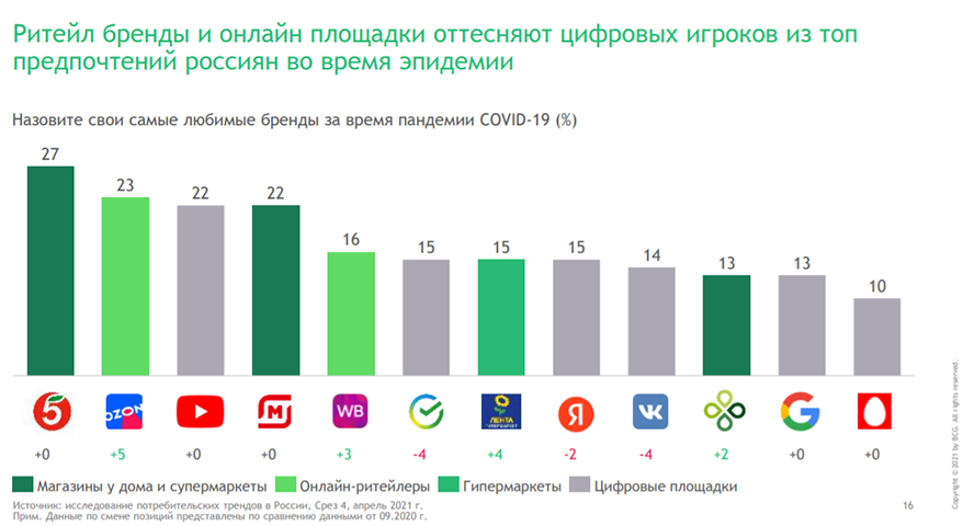 Ритейлеры оттесняют IT-компании в списке любимых «пандемийных» брендов россиян