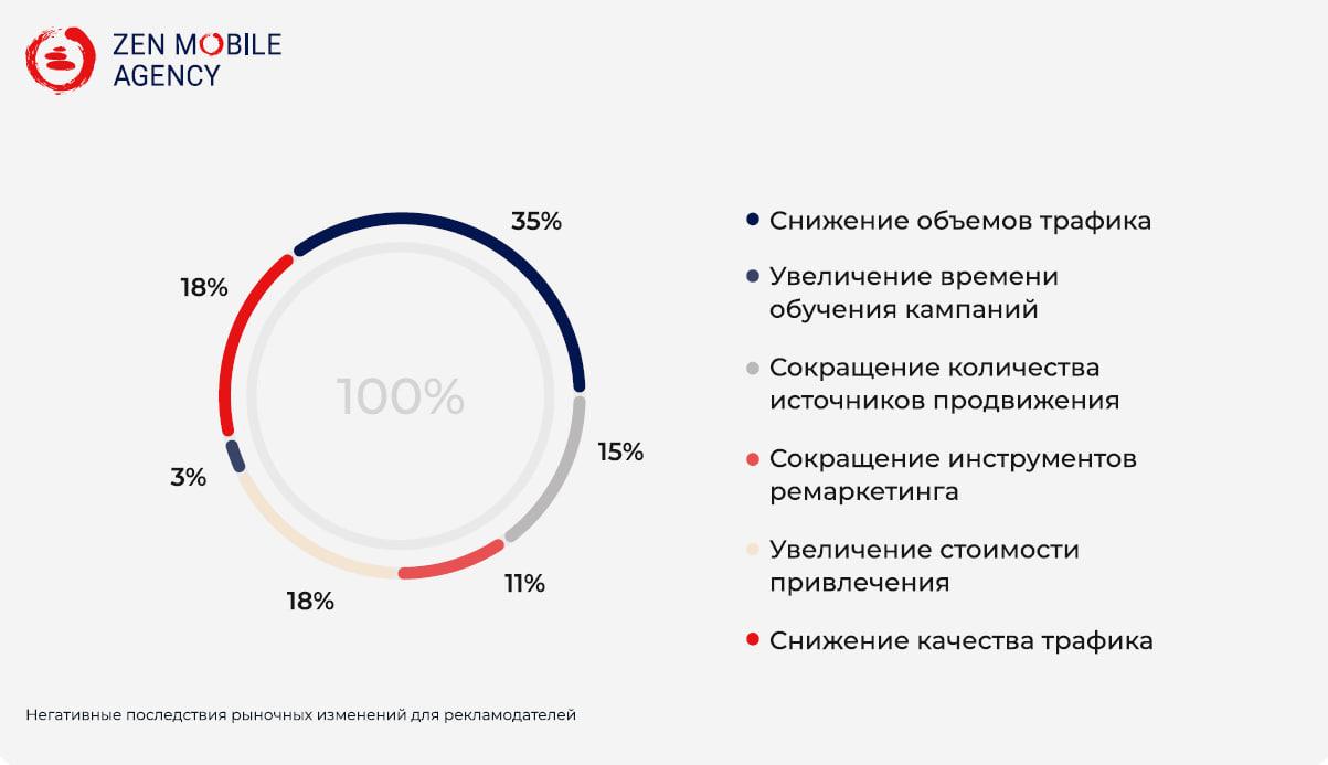 Более трети компаний в числе негативных последствий рыночных измененийназвали снижение объемов трафика. Около 18% опрошенных считают, что можетувеличиться стоимость привлечения, а также снизиться число трафика; 15%рекламодателей отметили сокращение количества источников продвижения.