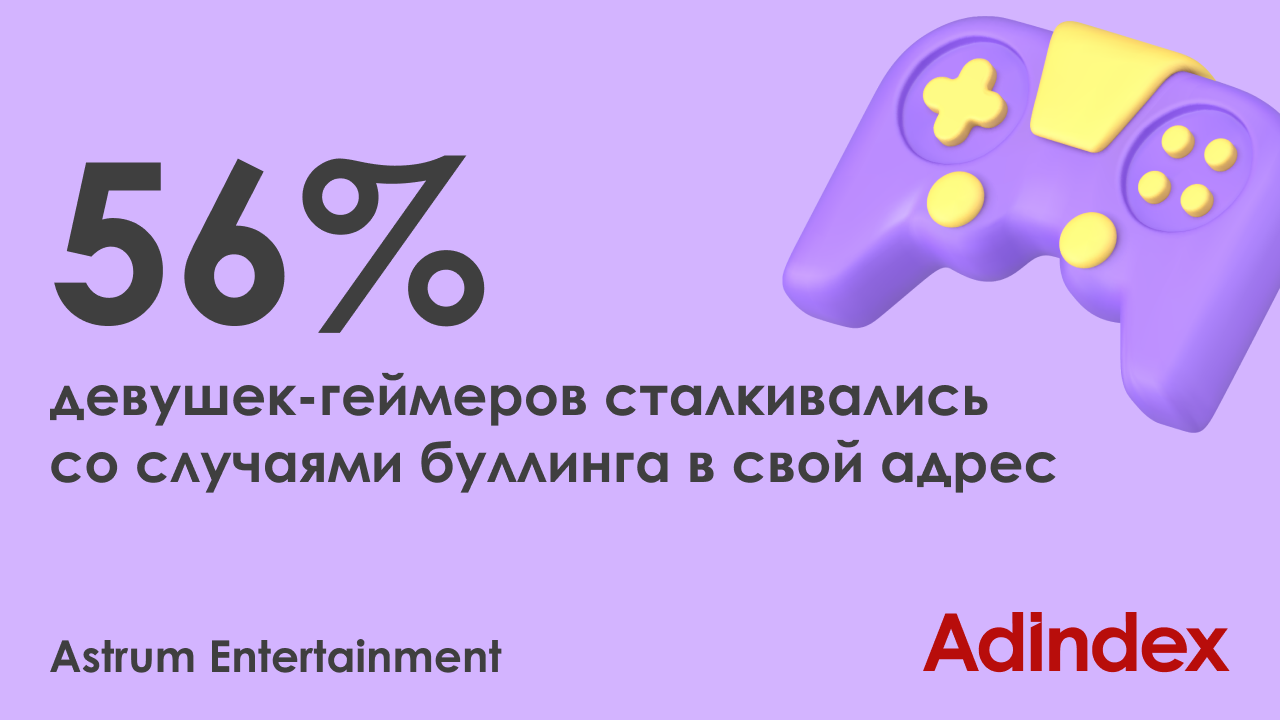 Более половины девушек-геймеров сталкивались со случаями буллинга в свойадрес, согласно опросу Astrum Entertainment. Самой распространеннойпричиной травли игроки назвали желание утвердиться за счет другихгеймеров (более 44%). На втором месте — гендерные стереотипы (15%), натретьем — желание других игроков пошутить (14%). Около 14% мужчин заявили, чтоу женщин-геймеров уровень игры ниже, чем у игроков мужского пола. С нимисогласились 7% девушек.
