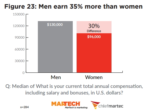 Какой разрыв в зарплатах мужчин и женщин в MarTech и как на заработок влияет наличие высшего образования — представляем главные выводы глобального отчета MarTech.org и Сhiefmartec.com
