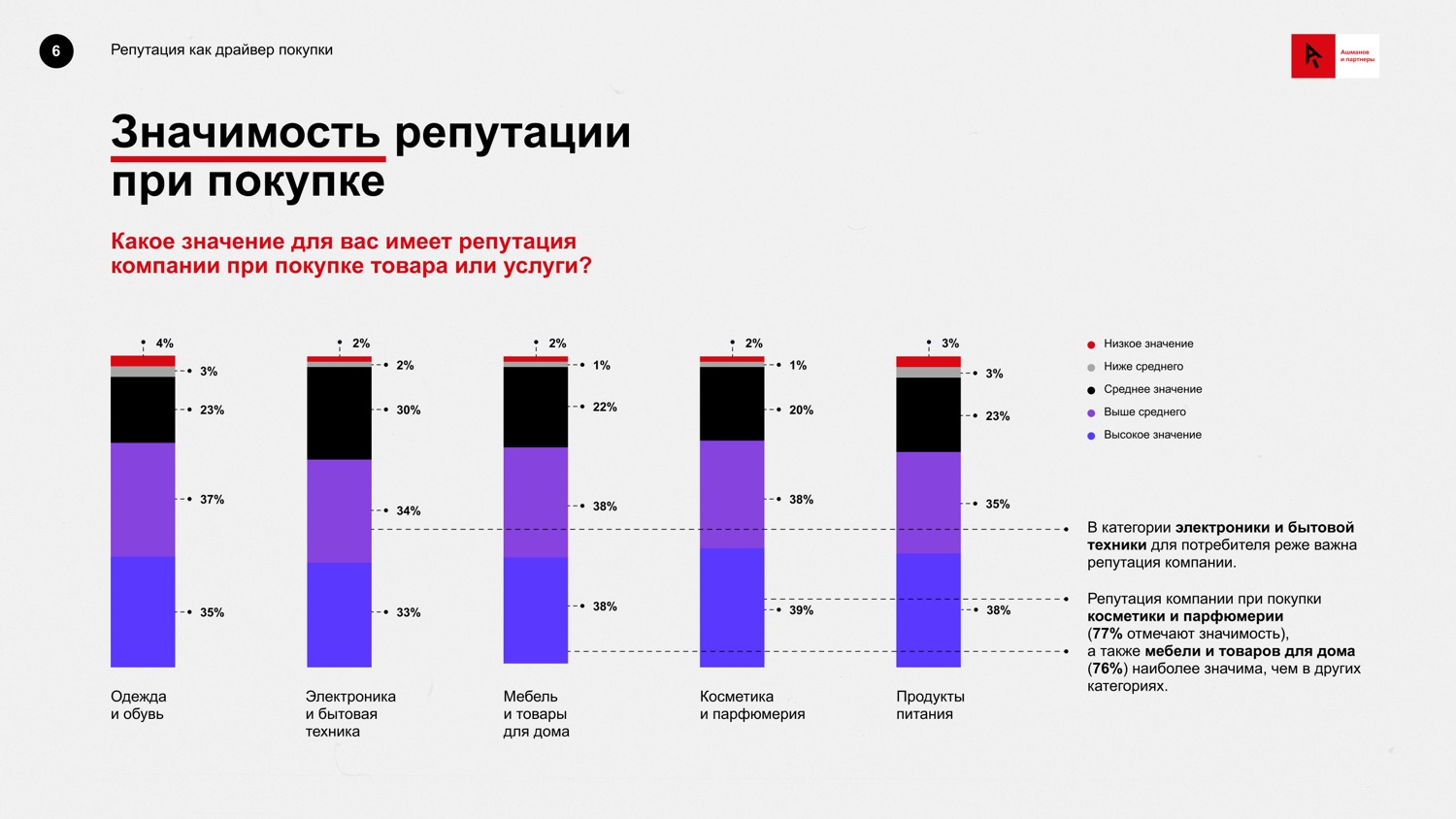 Репутация брендов важна для 73% покупателей, из которых 37% придают ейвысокое значение, а 36% ― выше среднего, согласно данным компании «Ашманов ипартнеры».