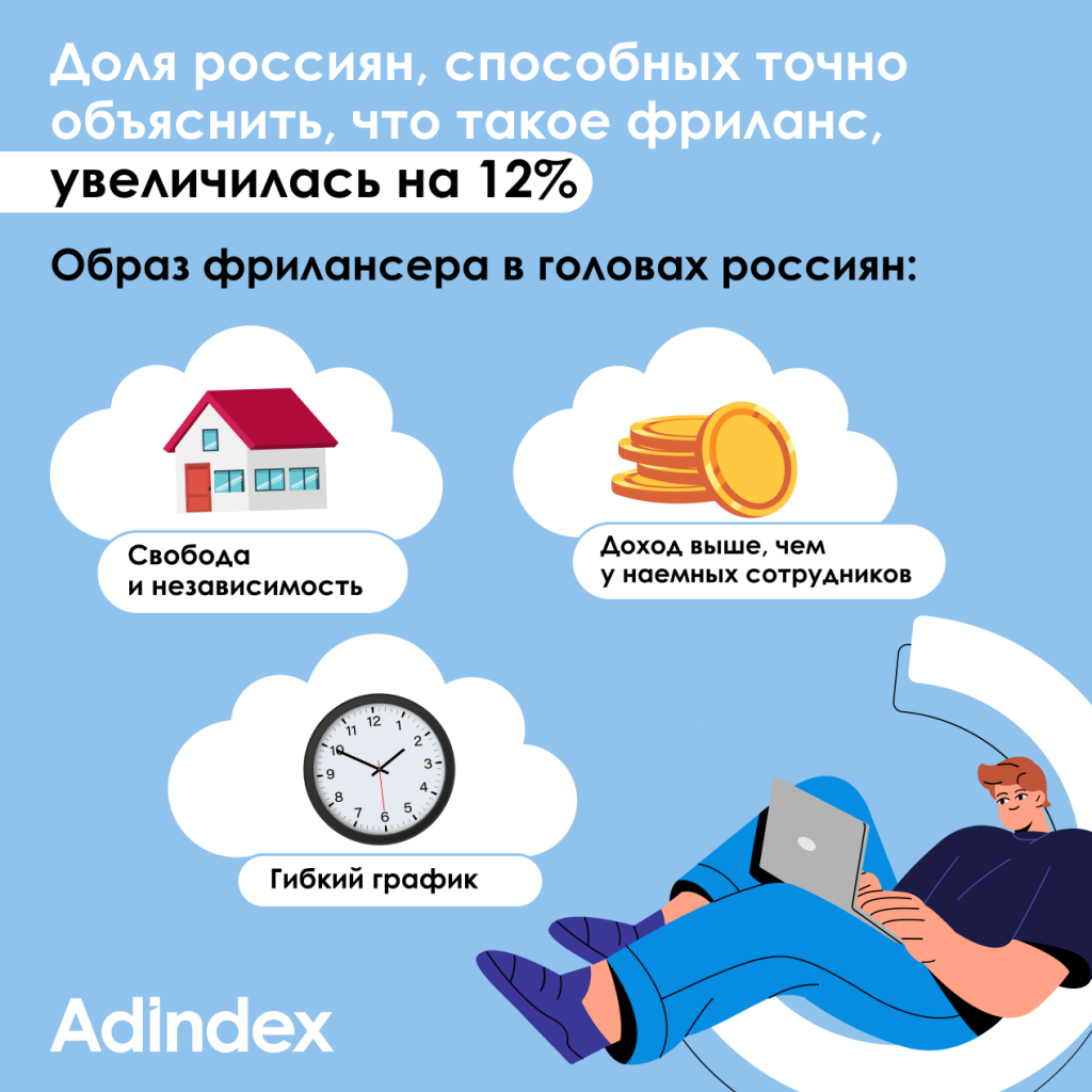 Фриланс постепенно становится привычной формой занятости в России. Все больше россиян отмечают рост числа независимых специалистов и считают, что их доходы выше, чем у наемных работников. Как выглядит фрилансер в мышлении общества — разобрался ВЦИОМ в ко-проекте с AdIndex