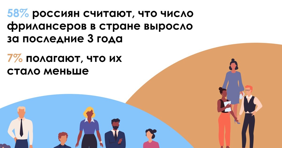 Большинство россиян (51%) считают, что число фрилансеров в стране запоследние три года выросло, и только 7% полагают, что их стало меньше, согласноданным ко-проекта Всероссийского центра изучения общественного мнения (ВЦИОМ) иAdIndex. Один из всероссийских опросов на тему фриланса, согласно, бесплатнойоткрытой базе исследованийВЦИОМ.Навигатор, проводился в 2020 г. Тогда 48%респондентов также говорили о росте числа фрилансеров, а 17% отмечали, чтоситуация не изменилась. Фрилансеры чаще всего работают в интернете, поэтомурост их числа заметнее среди активных интернет-пользователей (58%).