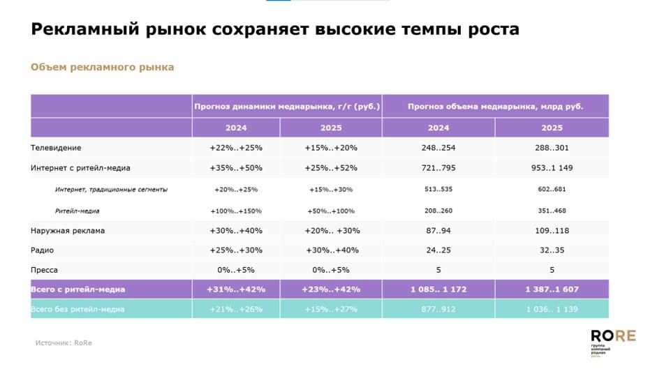 Рекламный рынок увеличится на 23-42% в 2025 году — RoRe