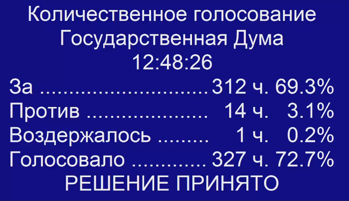 Проект приняли большинством голосов: 312 человек против 14.