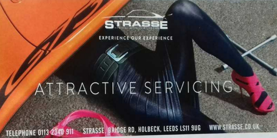 Реклама услуг автомастерской Strasse вышла в феврале этого года в журнале Porsche World, сообщает портал, — на ней была изображена женщина в коротком платье, лежащая под автомобилем, в окружении инструментов. Изображение модели сопровождалось слоганом «Привлекательное обслуживание».