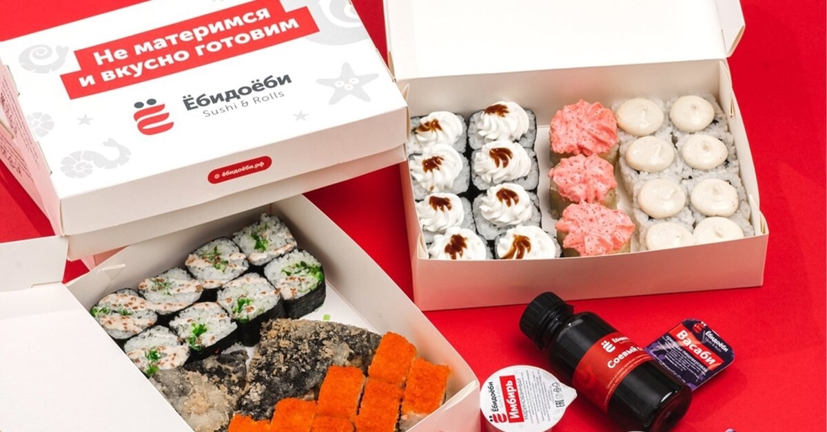 Федеральная антимонопольная служба (ФАС) признала ненадлежащей рекламу сетисуши и роллов «Ёбидоёби»,говорится на сайтеведомства. Речь идет о наружней рекламе в г. Волгограде: она содержалаизображение одного из сетов сети и текст: «Не материмся и вкусно готовим. Набор«КуниЛи» 2 кг. Ёбидоёби Sushi &Rolls».