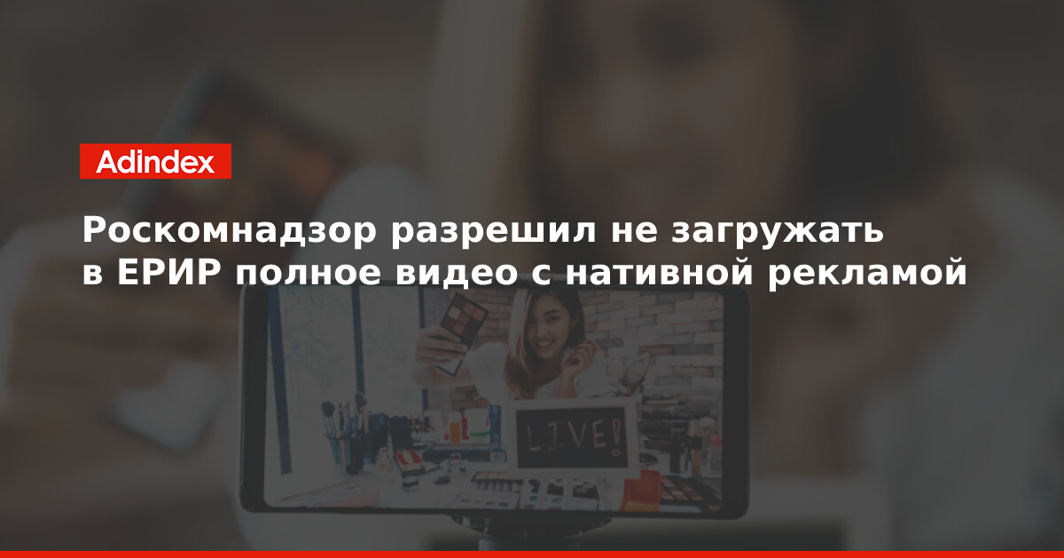 Роскомнадзор разрешил не загружать в ЕРИР полное видео с нативной рекламой
