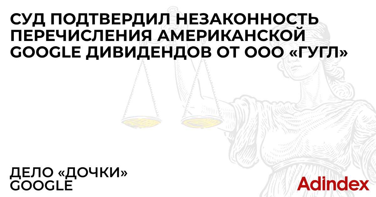 Девятый апелляционный суд отклонил апелляционную жалобу американской GoogleLLC касательно решения нижестоящей инстанции, которая признала незаконнымперечисление ООО «Гугл» в 2021 г. около 9,5 млрд руб. дивидендов материнскойамериканской компании, передает корреспондент AdIndex из зала суда.