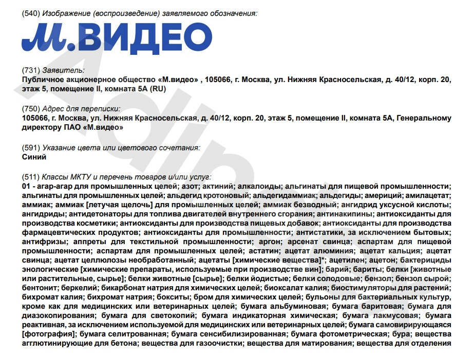 Компания «М.Видео-Эльдорадо» 27 сентября подала две заявки в Роспатентна регистрацию знаков «М» с точкой и «М.Видео» в синем цвете. Соответствующийдокумент обнаружил корреспондент AdIndex.