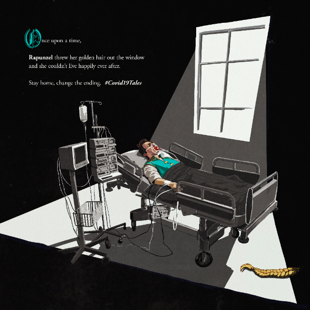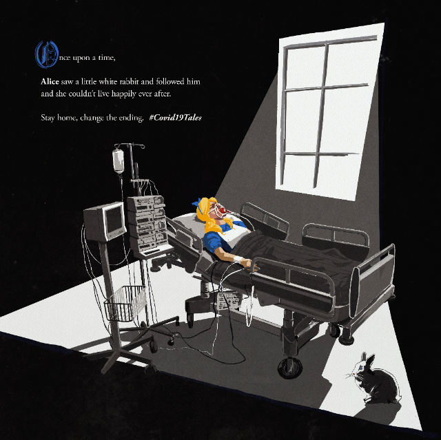 «Красная Шапочка решила отнести гостинцы своей бабушке и не смогла жить долго и счастливо», «Рапунцель спустила свои косы из окна башни и не смогла жить долго и счастливо», «Увидев маленького белого кролика и отправившись за ним вслед, Алиса не смогла жить долго и счастливо». Эти надписи на постерах показывают, какими драматическими могут быть последствия для нарушителей карантина.