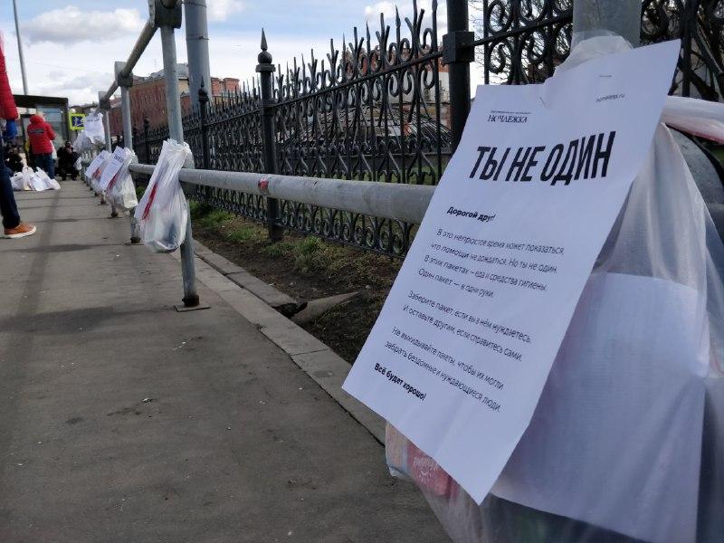 Помочь бездомным может каждый желающий. Для этого вам нужно собрать в пакет продукты, носки, зубную пасту, мыло и другие предметы первой необходимости. Такой набор обойдется примерно в 400–500 руб., подсчитали в фонде. К пакету нужно прикрепить записку, чтобы бездомный человек понял, что набор предназначен для него. А также положить в него листок с информацией о коронавирусе и правилах борьбы с ним.