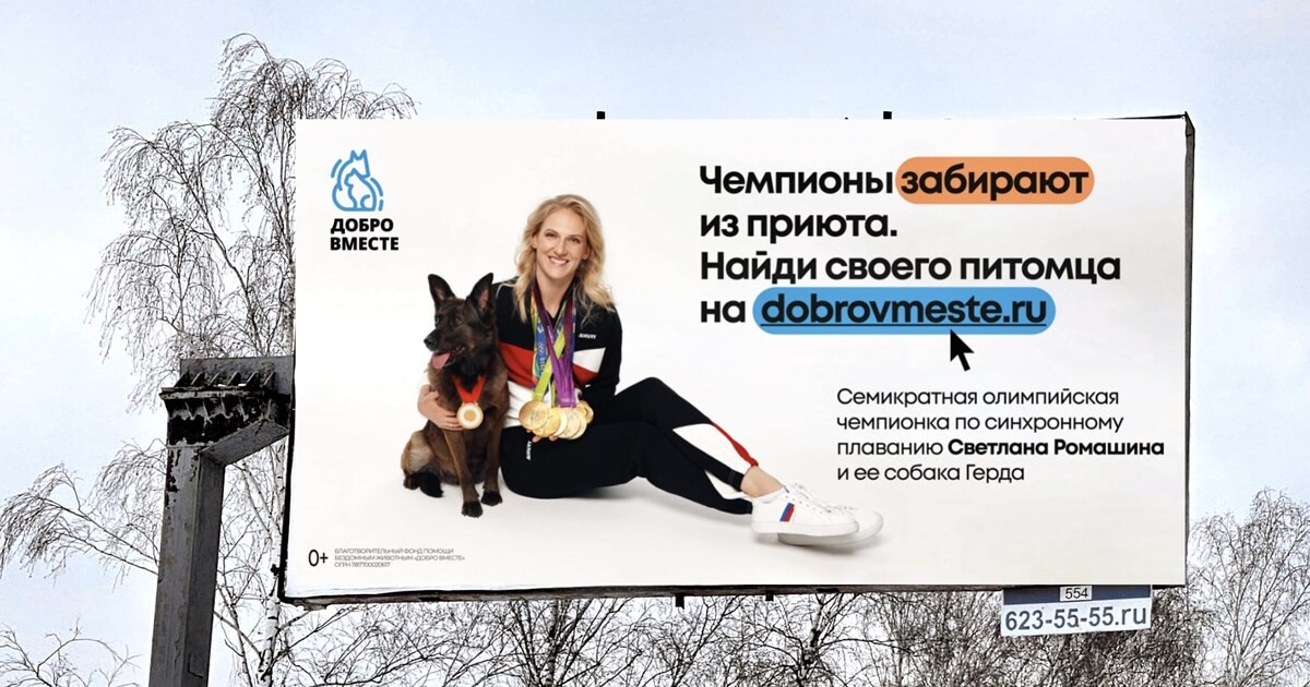 Олимпийские чемпионки запустили благотворительную акцию с платформой помощибездомным животным «Добро вместе»,сообщает пресс-служба площадки. Цель проекта «Чемпионы забирают изприюта» — помочь животным найти дом с помощью сайта благотворительнойорганизации.