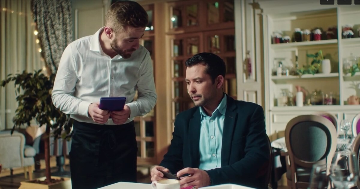 В другой рекламе мужчина пришел на собеседование в компанию, но работодательуже знает всю информацию о нем — даже самую личную. В третьем видео барменрассчитывает клиента и уже заранее знает все данные его карты, включаяCVC-код.