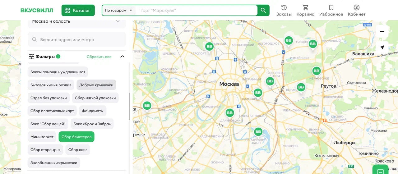 Магазины с пунктом приема блистеров можно найти на сайте «ВкусВилла» пофильтру «Сбор блистеров».