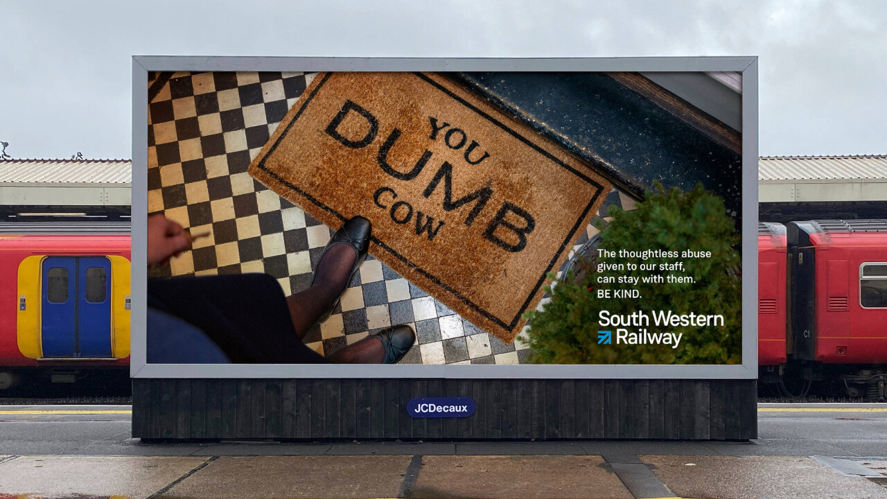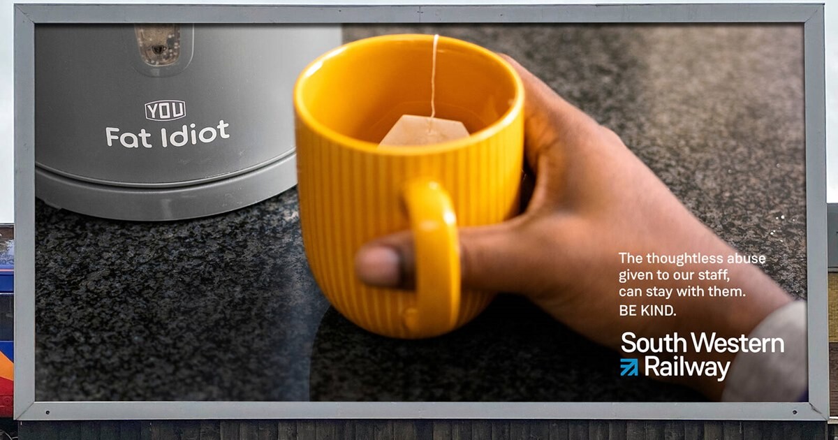 Британская железнодорожная компания South Western Railway разместиланаружную рекламу, посвященную грубым словесным оскорблениям, которымподвергались ее работники.