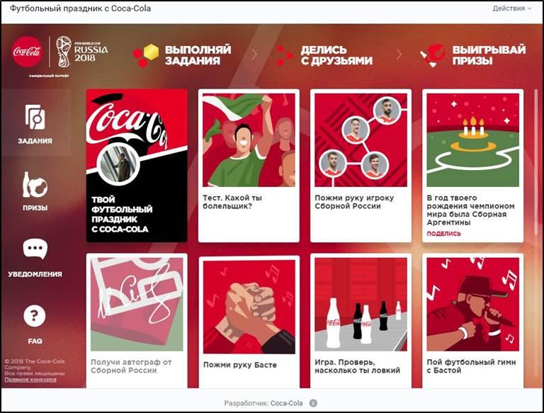 Абсолютным лидером по количеству упоминаний стал бренд Coca-Cola. Пользователи активно делились ссылками на игру «На языке футбола» в ВК от Coca-Cola. Из 46,6 тысяч упоминаний Coca-Cola 41,1 тысяча (32,99% от общего количества по всем анализируемым брендам) — это информация, связанная с игрой.