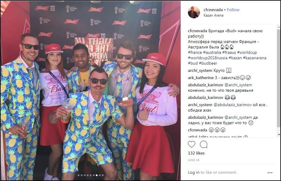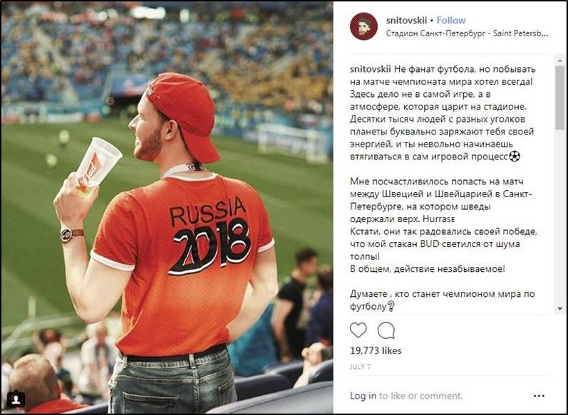 Budweiser — третий по упоминаемости и второй по вовлеченности. Болельщики и блогеры активно делились эмоциями со стадионов, не забывая указывать хештеги пивоваренной компании, а также делали репосты из футбольных сообществ под #ManoftheMatch — голосование за лучшего игрока матча по версии болельщиков.