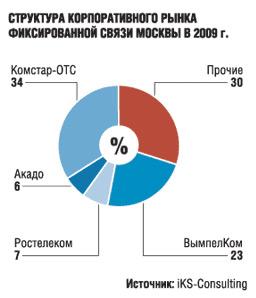 В структуре рынка по игрокам за время кризиса существенных перемен не произошло. На двух крупнейших операторов-универсалов, оказывающих основной спектр услуг фиксированной связи — «Комстар» и «ВымпелКом», — приходится 57% рынка. При этом объединенная компания «Комстар-ОТС», включая показатели МГТС, сохраняет первое место на столичном корпоративном рынке — на нее приходится более трети всех доходов, получаемых от конечных потребителей — юридических лиц.