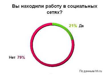 «Вы находили работу в социальных сетях?» Такой вопрос задал своим посетителям портал HeadHunter. И каждый пятый (21%) ответил положительно. Руководитель службы социальных медиа HeadHunter Денис Марков отмечает, что работу в социальных сетях можно искать двумя способами.