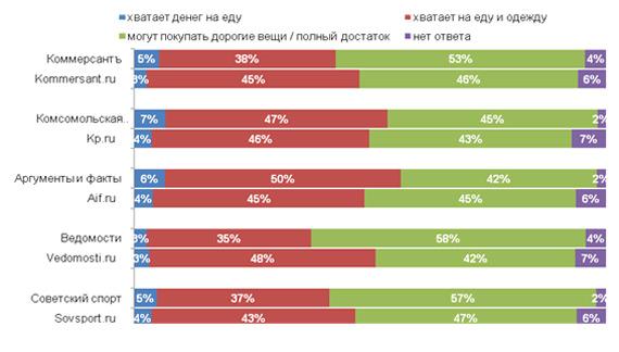 Материальное положение читателей печатных и веб-версий изданий (на примере Москвы).