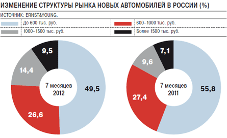 Рост доли автомобилей ценой от 1 млн руб. в Ernst & Young связывают с тем, что многие бренды, например Kia и Hyundai, которые раньше не решались активно выводить на рынок модели этого сегмента, сосредоточились на них в этом и прошлом году. Продажи бюджетных моделей иномарок начали падать еще в 2011 году. По данным Ассоциации европейского бизнеса (АЕБ), в январе—июле этого года продажи, например, Renault Logan упали на 16%, Chevrolet Lacetti — на 14%, Daewoo Matiz — на 12%.