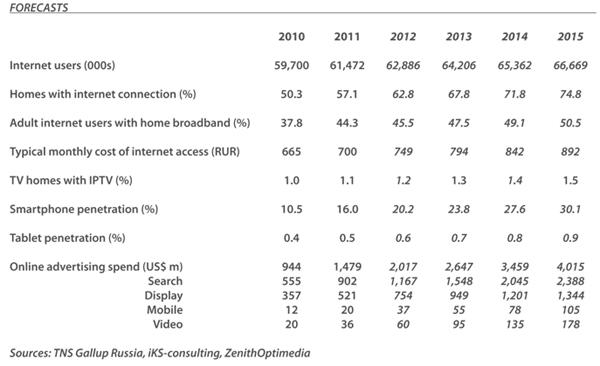 На данный момент Россия находится на 19 месте в мире по уровню проникновения новых медиа. Сейчас в этом списке лидирует Норвегия с показателями проникновения в 40%. За ней идут Франция и Голландия (по 35%). К 2015 году, по прогнозу ZenithOptimedia, лидером в тройке станет Голландия (с 65%), Франция останется на втором месте (с 60%), а на третье встанет Ирландия (с 50%), сейчас находящаяся в середине рейтинга. В этой стране популярность новых технологий у населения растет быстрыми темпами. Проникновение новых медиа в России вырастет с 7,3% в 2012 году до 11% в 2015, однако наша страна останется на 19 месте рейтинга, прогнозирует ZenithOptimedia.