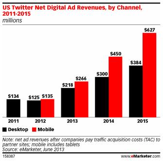 До сих пор только Twitter удалось выигрывать от перехода к мобильной рекламе. В прошлом году на ней компания заработала больше, чем на desktop-рекламе, и к 2015 году мобильная реклама будет приносить все больше денег.