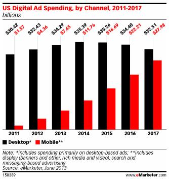 Исследователи прогнозируют, что в США desktop-реклама в 2014 году принесет $35,39 млрд, а потом эта сумма начнет снижаться. В 2017 году она уже составит $32,51 млрд, что близко к сумме, полученной в 2012 году. Тем временем, в 2013 году мобильная реклама принесет $11,76 млрд, поднявшись на $7,65 млрд за год.