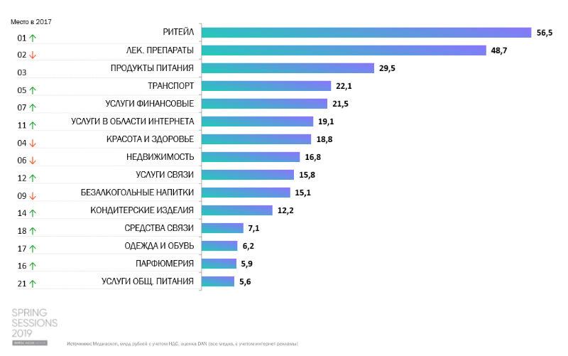 Ритейл в 2018 г. вышел на первое место по затратам в медиа, сместив производителей лекарственных препаратов, говорит Мария Донских. Во многом изменения произошли благодаря электронной коммерции, в развитие которой ритейлеры активно вкладываются.