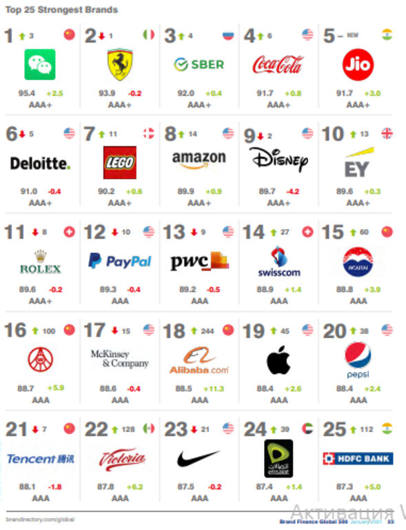 За год банк поднялся на одну позицию за счет ребрендинга, в рамкахкоторого сменил название со Сбербанка на «Сбер», а также объединил услугив одну экосистему, отмечается в отчете. Единый зонтичный бренд кредитнаяорганизация официальнопредставила в сентябре прошлого года.