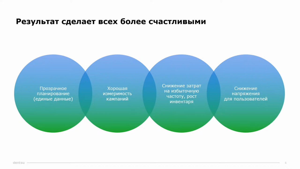 «У нас есть возможность снизить давление на нашего, иногда несчастного,пользователя, который смотрит рекламу», — резюмировала CEO dentsu RussiaМария Донских.