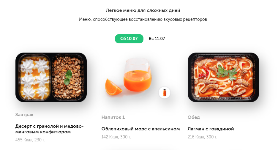 Меню доступно на два, шесть и двенадцать дней. Доставка рационов будетосуществляться курьерами Grow Food в Москве и Санкт-Петербурге.
