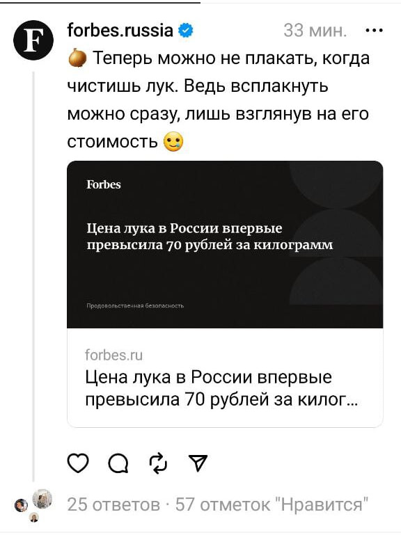 Forbes Russia на своей страничке также упражняется в юморе: нестандартнокомментирует новости и заряжает на «удачную неделю».