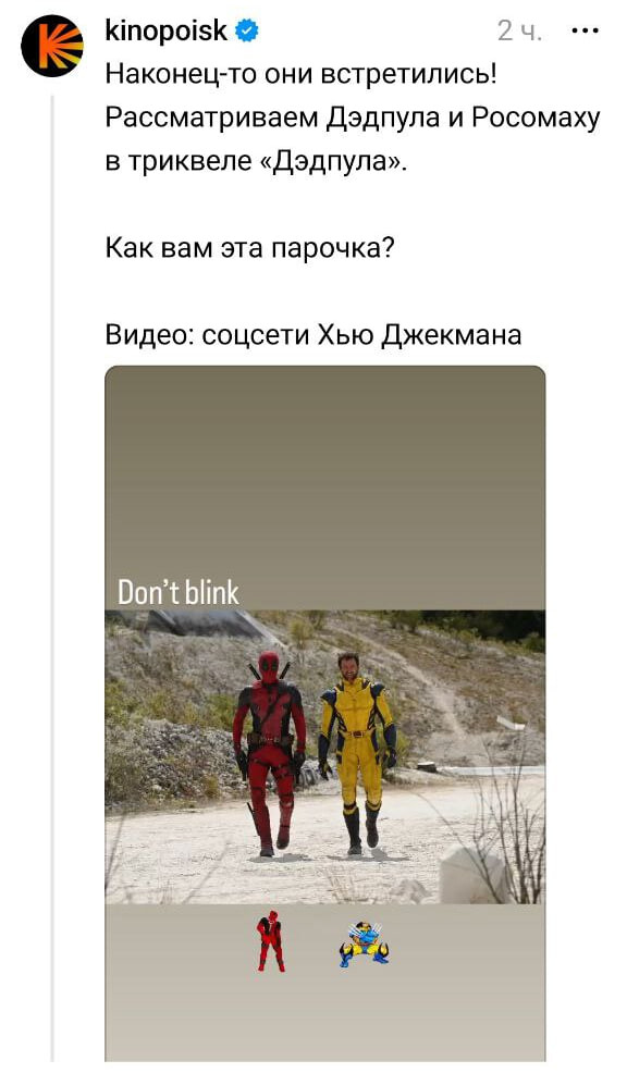 «Кинопоиск» публикует в соцсети анонсы и трейлеры новых фильмов.