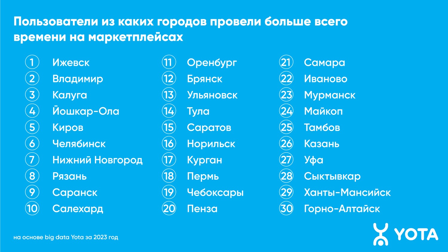 Мужчины сейчас потребляют 52% трафика, они составляют 55% всех клиентов.Женщины при этом увеличили свой трафик на 56%. Чаще всего посещают маркетплейсыжители Москвы, Санкт-Петербурга и Уфы.