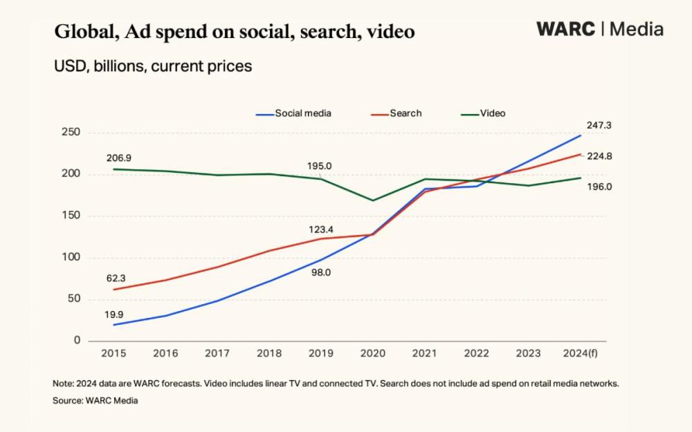 Соцсети стали крупнейшим каналом в мире по объему расходов в рекламу,обогнав платный поиск в прошлом году. Facebook* и Instagram* показали ростболее чем на 20% за первый квартал 2024 г. Ожидается, что компания превзойдетглобальное линейное телевидение по объему рекламных расходов в 2025 г.,согласно прогнозам WARC Media (World Advertising Research Center).