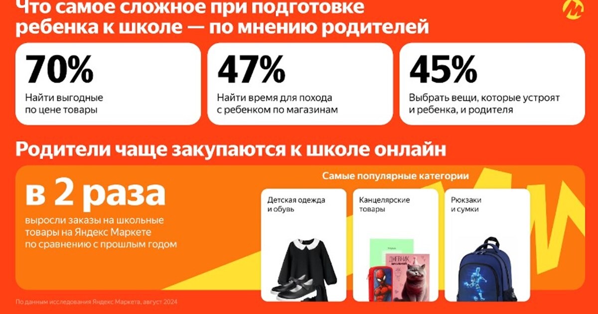 Сборы к 1 сентября по доступным ценам являются приоритетной задачей для 70%опрошенных россиян. При этом для 47% важно в целом найти время, чтобы купитьвсе необходимое вместе с ребенком, говорится в сообщении «Яндекс Маркета».