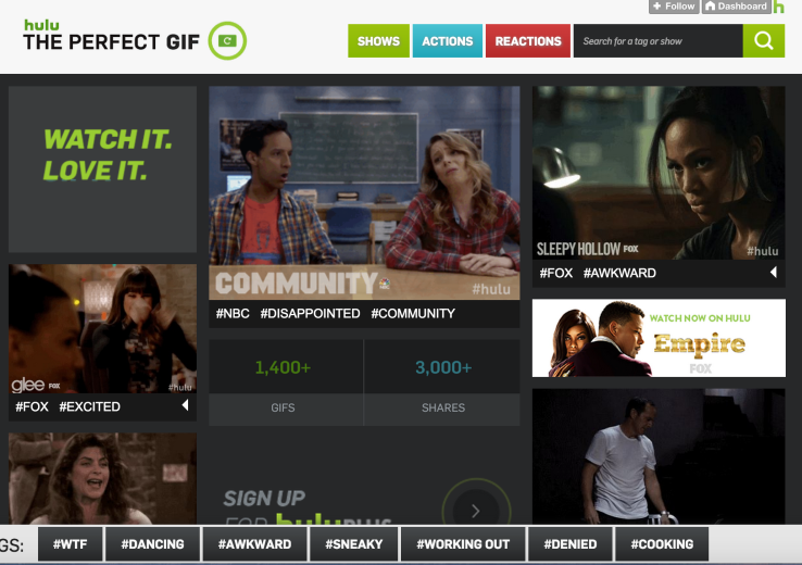 Идея нового проекта – наполнить социальные сети высококачественными GIF-изображениями, сделанными на основе лицензированного и оригинального контента Hulu. Затем – заработать на этом распространении, продвигая бренд Hulu молодёжной аудитории Tumblr. На все GIF нанесены водяные знаки с хэштегом #hulu и названием шоу.