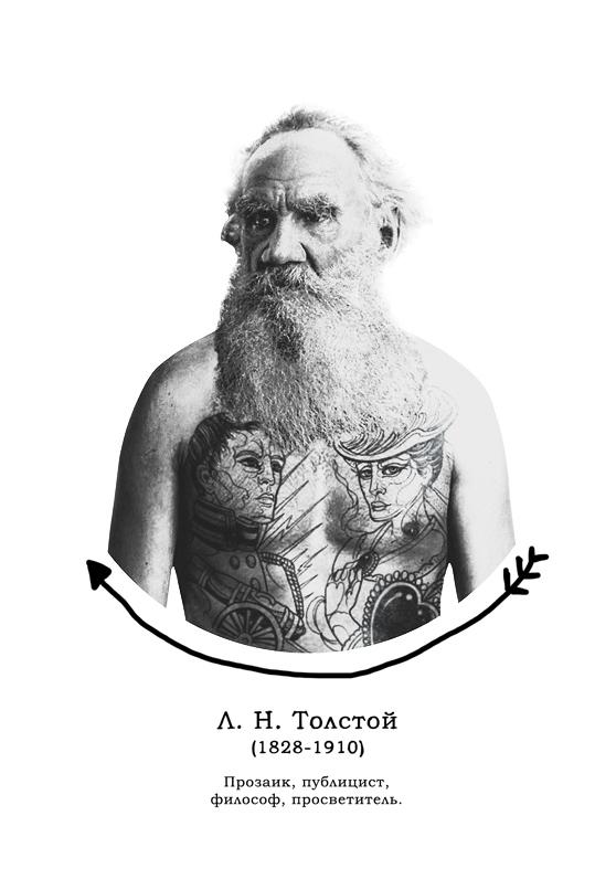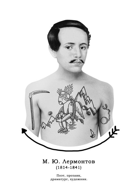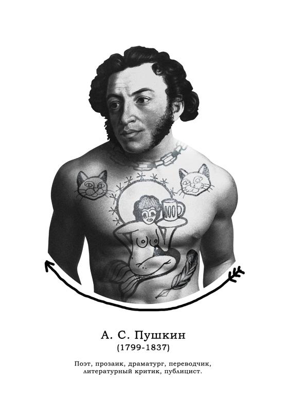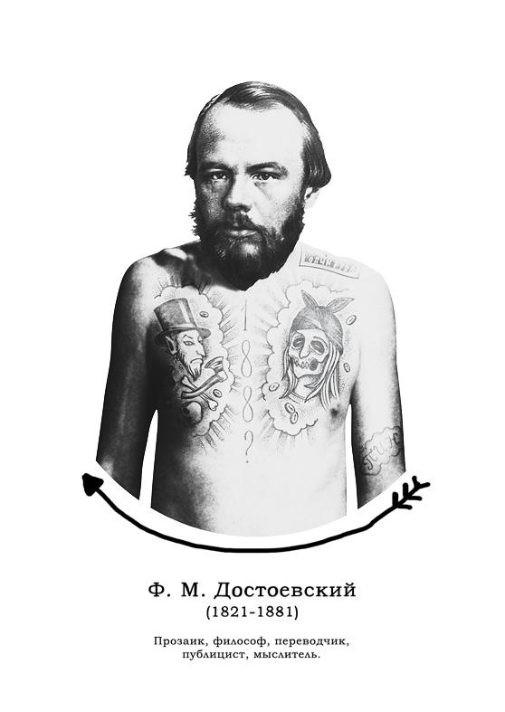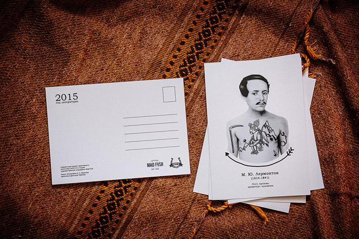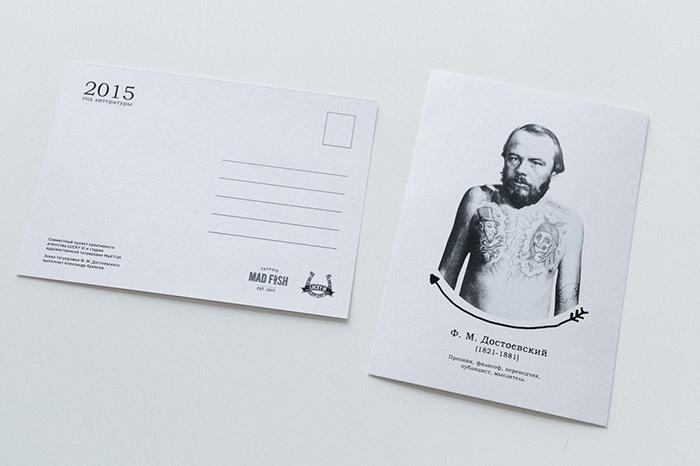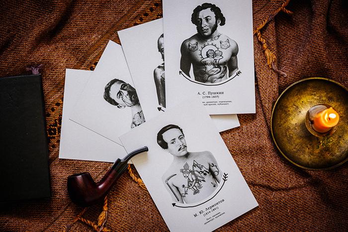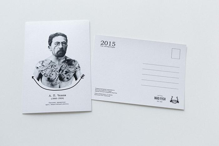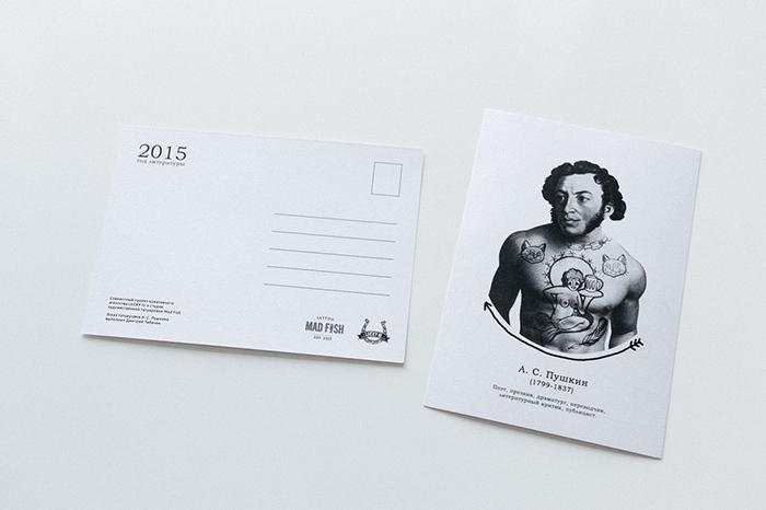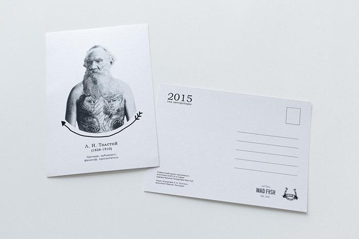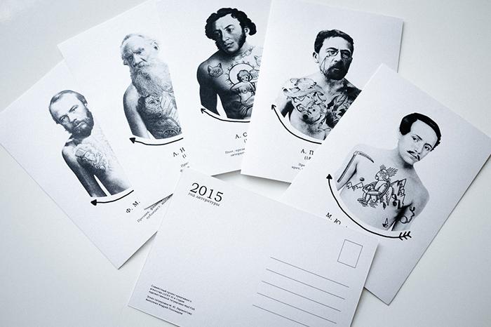 Креативщики представили, какими могли бы быть татуировки русских классиков и подготовили серию из пяти открыток. Художники студии Mad Fish сделали эскизы на основе самых известных произведений великих писателей.